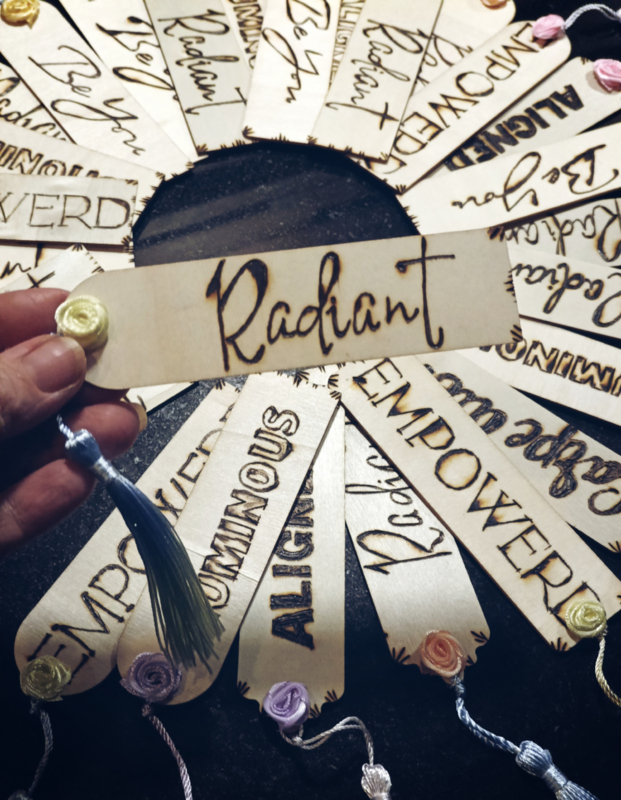 BoekenleggerEen stijlvolle boekenleggen combineert natuurlijke materialen met een krachtig woord en is afgewerkt met een elegante tassel en roosje.
