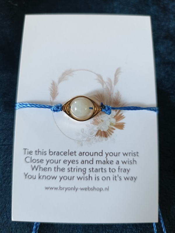 Deze prachtige geluksarmband met edelsteenkraal en 'gouden oog' is meer dan een mooi cadeau. Het fijne draadje staat symbool voor jouw persoonlijke wens.