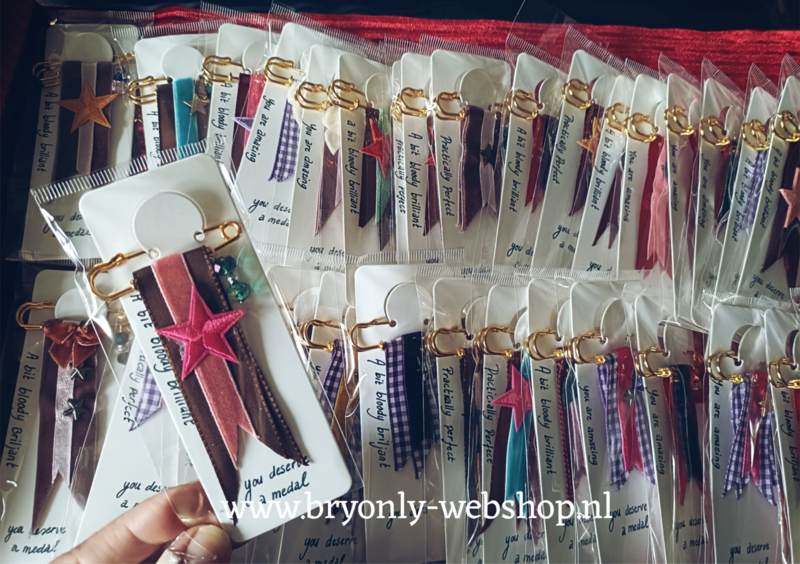 Elke medaille wordt met zorg en aandacht gemaakt en draagt een inspirerende tekst:
